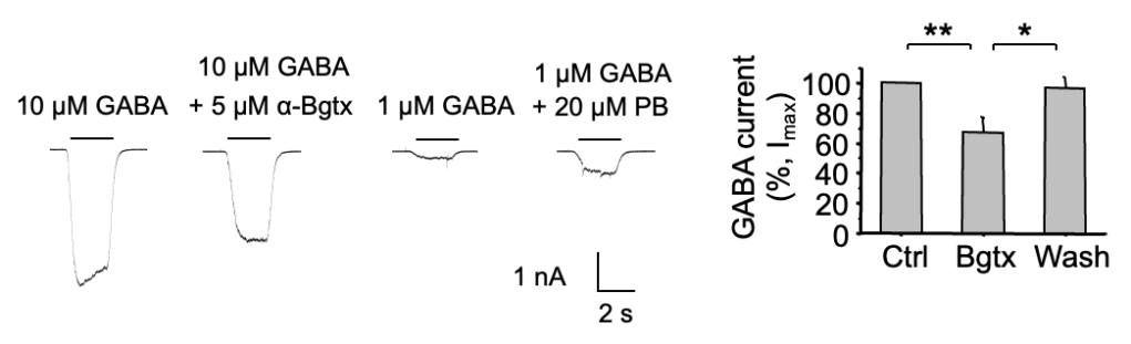 α-Bgtx can antagonise GABA-activated currents in neurons