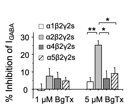At lower concentrations of α-BgTx (5 μM) however, inhibition was only observed at α2β2γ2 receptors.