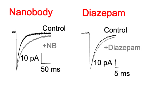 In collaboration with Dr Paul Miller (University of Cambridge) and Professor Radu Aricescu (LMB, Cambridge) we have characterised the pharmacology of specific nanobodies in hippocampal brain slices.
