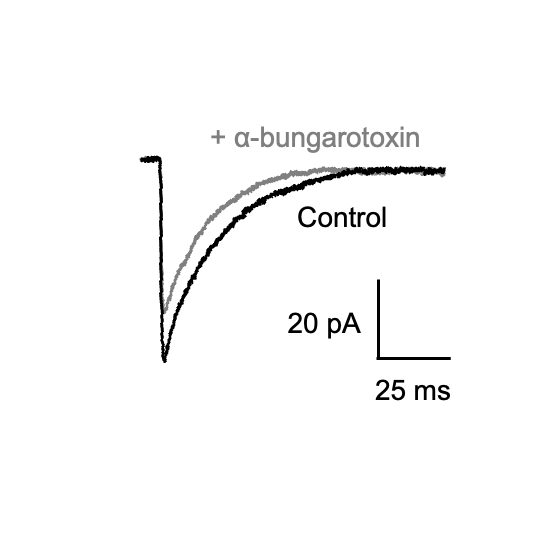 Using electrophysiology along with fast application systems I probe pharmacology of therapeutic agents (eg – drugs, proteins and biologics such as nanobodies). We have characterised the neuropharmacological profiles of multiple agents and discovered multiple neurodevelopmental disorders drug targets.