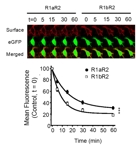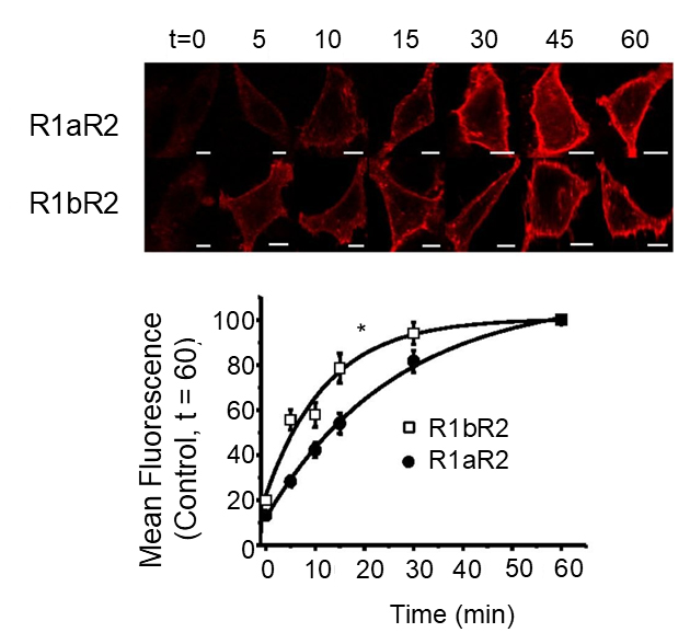 This allowed high affinity fluorescence labelling of R1b-containing receptors.