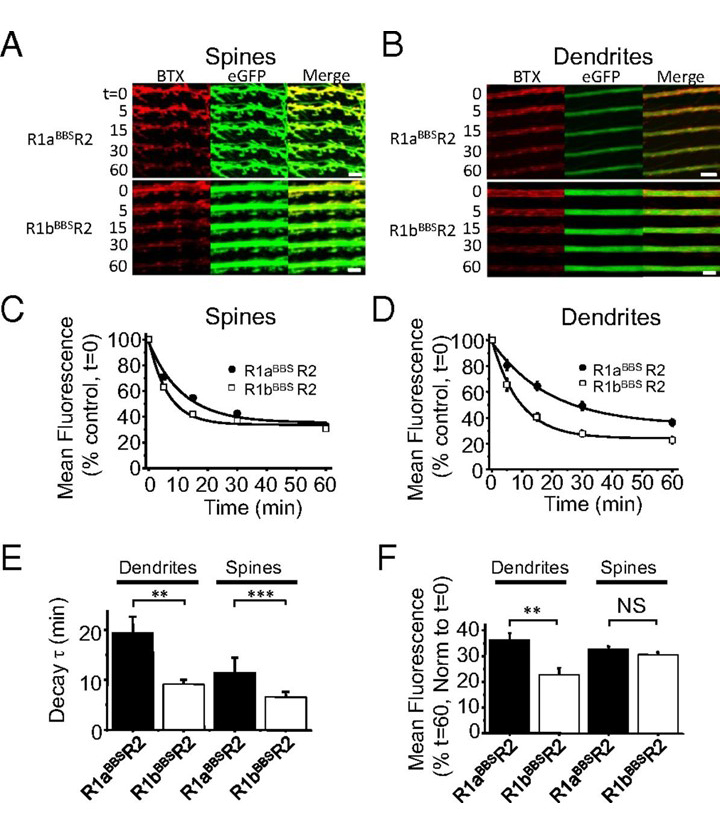 Presence of the Sushi domains in R1aR2 enables these receptors to be more stabel on the cell surface of dendrites and spines than R1bR2 receptors